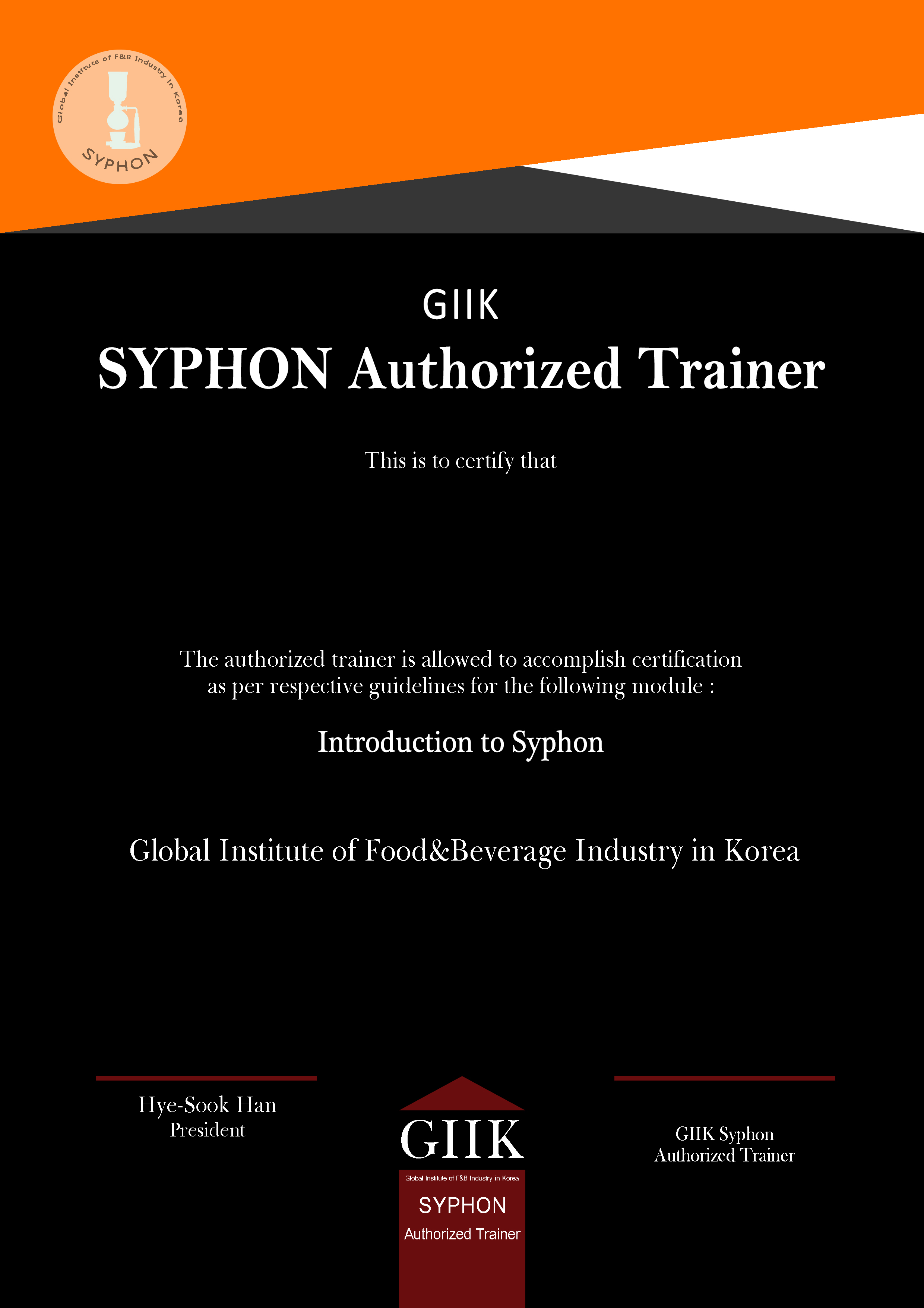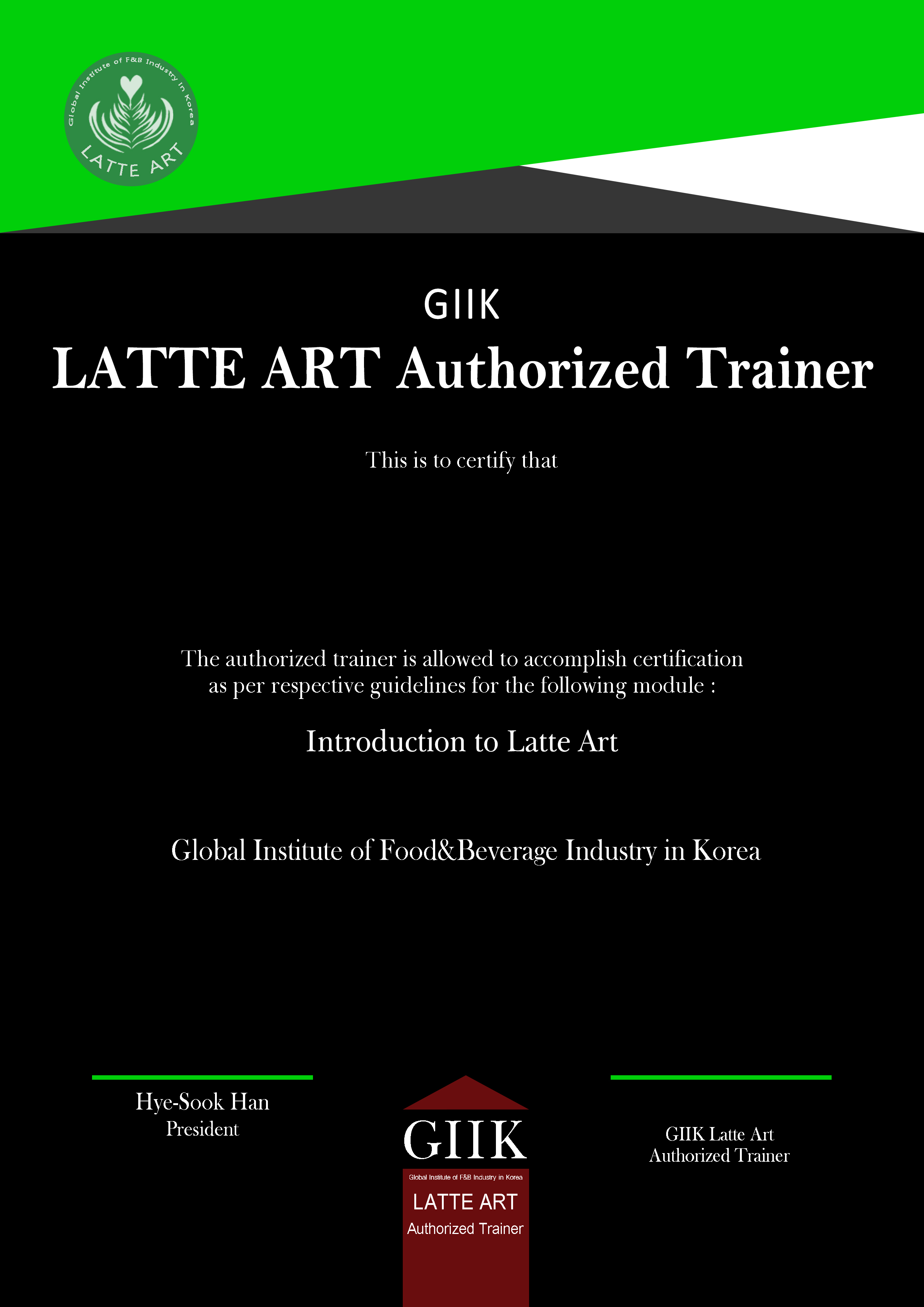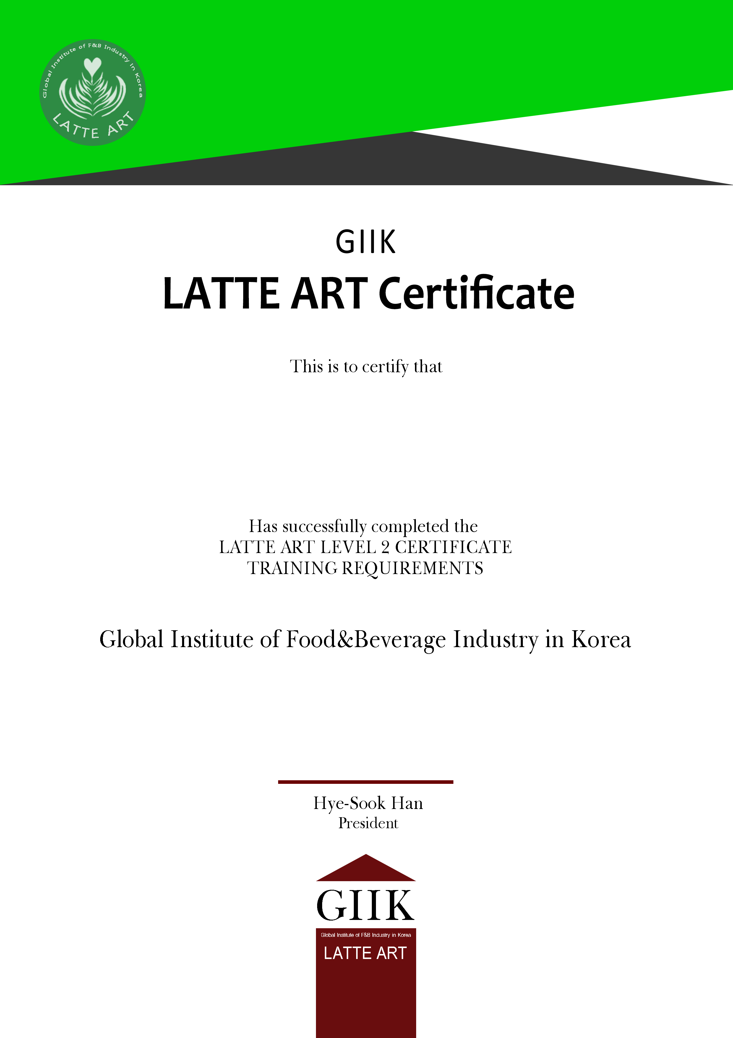 Non Alcohol [Coffee]바리스타 1급커피에 대한 기본 이론 및 바리스타 실무 테크닉을 평가Certificate핸드드립 파운데이션핸드드립 커피에 대한 기본 추출 원리 및 추출 테크닉을 평가Certificate핸드드립 1급핸드드립 커피에 대한 기구별 추출 원리 및 그에 따른 추출 테크닉을 평가Certificate라떼아트 1급라떼아트 푸어링 기법에 따른 실무 이해 및 디자인별 푸어링 테크닉을 평가Certificate로스팅 1급생두부터 로스팅 테크닉에 대한 전문적 지식 및 로스팅 테크닉을 평가Certificate사이폰 1급브루잉 커피에 대한 전문적 지식 및 사이폰 기구별 추출 테크닉을 평가CertificateAlcohol [Sake, Wine etc.]사케 소믈리에 1급사케에 대한 전문적 지식 및 서비스‧프로모션 능력 평가Certificate와인 소믈리에 1급와인에 대한 전문적 지식 및 서비스‧프로모션 능력 평가CertificateAuthorized Trainer바리스타 심사위원바리스타 양성을 위한 프로패셔널 이론지식‧실무능력 평가Certificate핸드드립 심사위원핸드드립 전문가 양성을 위한 프로패셔널 이론지식‧실무능력 평가Certificate라떼아트 심사위원라떼아트 전문가 양성을 위한 프로패셔널 이론지식‧실무능력 평가Certificate로스팅 심사위원로스팅 전문가 양성을 위한 프로패셔널 이론지식‧실무능력 평가Certificate사이폰 심사위원사이폰 전문가 양성을 위한 프로패셔널 이론지식‧실무능력 평가Certificate사케 교육자 자격증(예정)사케 소믈리에 양성을 위한 사케에 관한 전문 교육자 자질 평가와인 교육자 자격증(예정)와인 소믈리에 양성을 위한 와인에 관한 전문 교육자 자질 평가